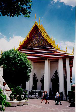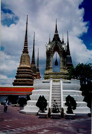 This is the front entrance way to the temple that houses the Reclining Buddha. Click here to get closer.